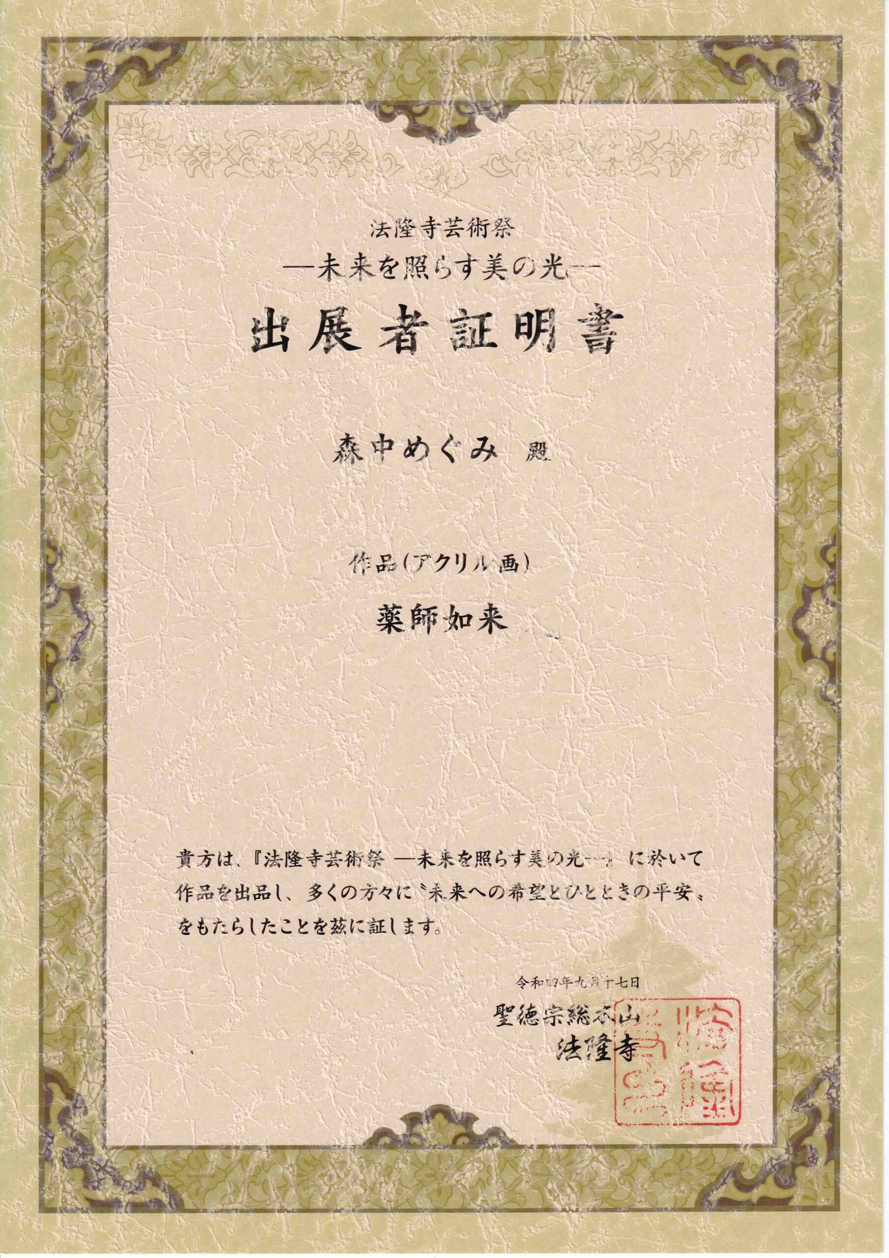 法隆寺芸術祭へ出展させて頂きました。