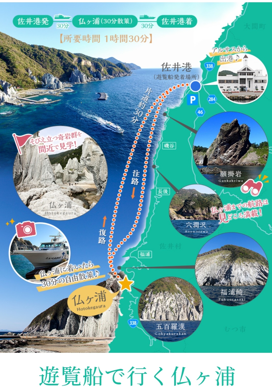 2便13時発遊覧船・佐井港から乗りました。