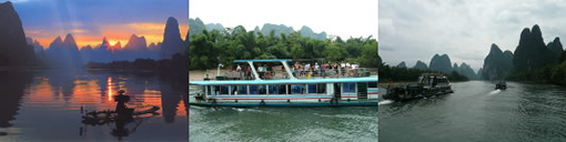 桂林の南、竹江の船着場から終点の陽朔まで、約60kmを4時間~5時間かけて、山水を満喫しながら下ります。