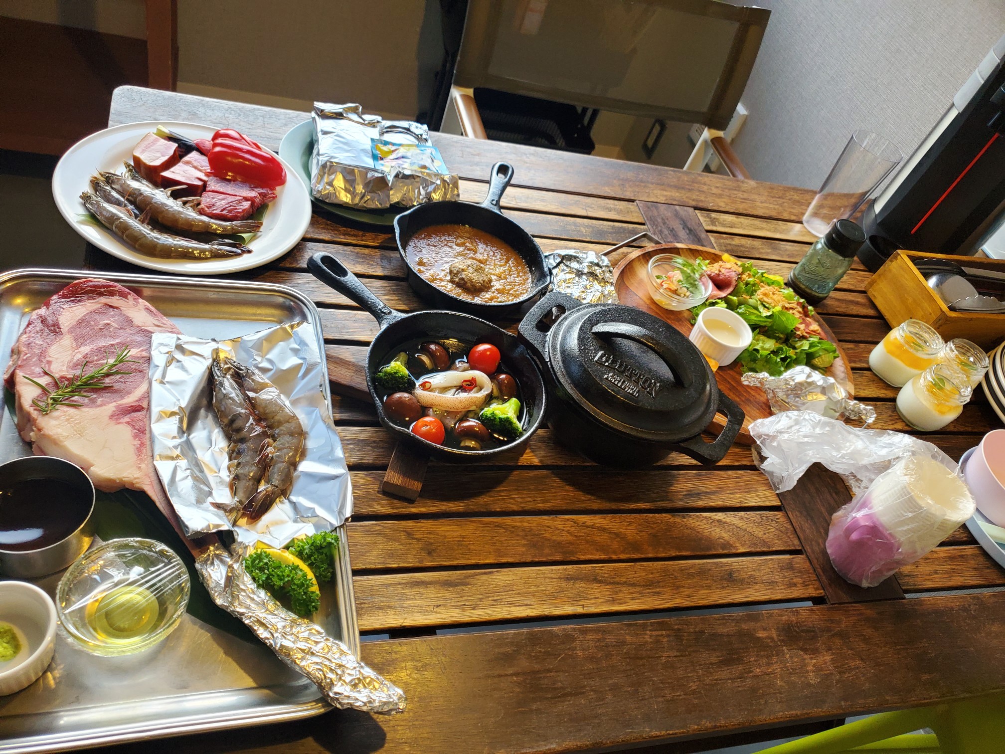そして、市民プールへ行き、コンテナホテルで、又、バーベキューでした・・・が、お腹がいっぱいで3人とも食べれませんでした????