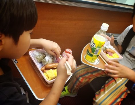 ロマンスカーの中でお弁当を頂きました☺