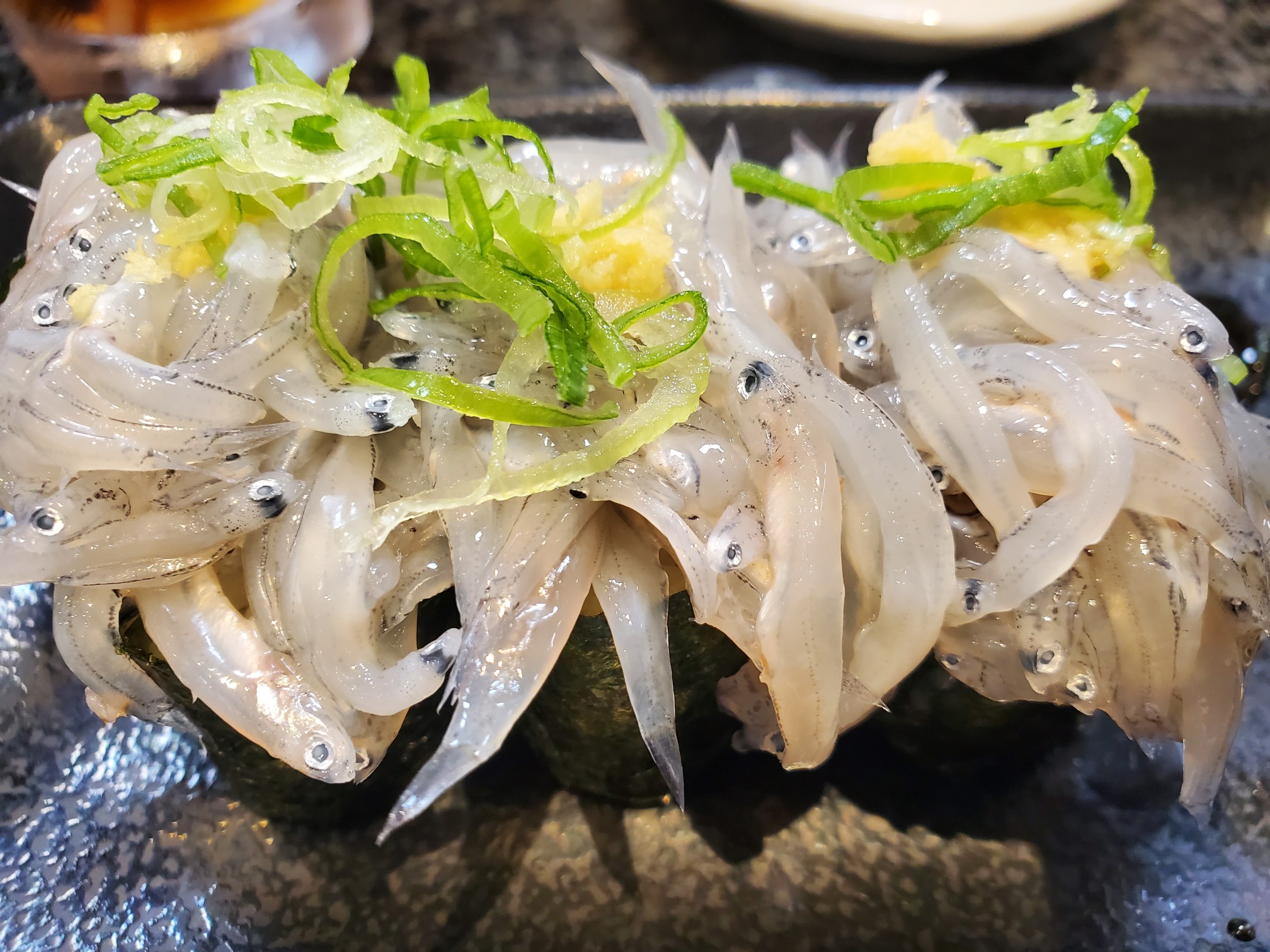 ランチは、回転寿司へ????行きました。鯵と生しらすが、絶品のお味でした。回転寿司には思えません。