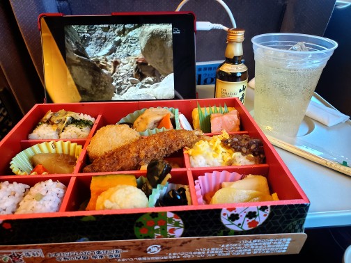 14日新幹線で大阪へ向かいながら、お弁当を頂きました。QRコードで山崎シングルサイズを一緒にご注文(^_-)-☆