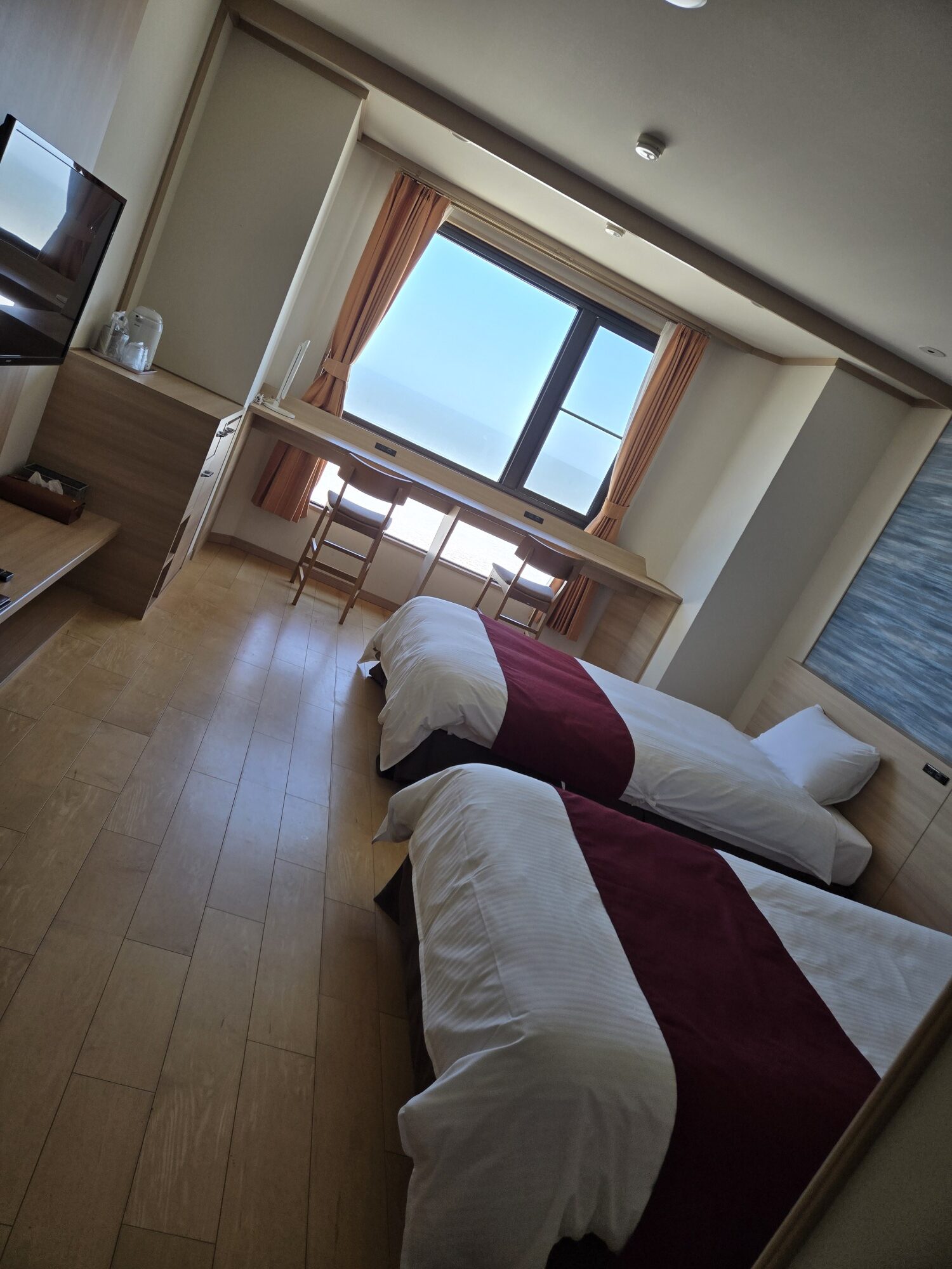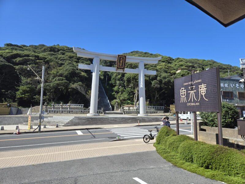 今回、お客様竹林さまと、大洗魚来庵へ宿泊させて頂きました。窓からも大洗海岸の鳥居が見えました。深夜、三日月も窓から見せて頂きました。