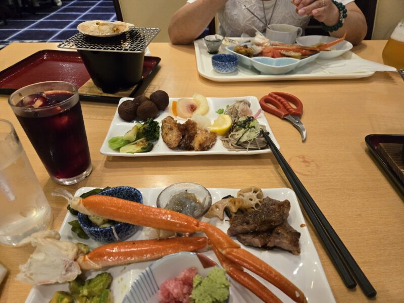 ディナーと温泉は姉妹ホテル大洗ホテルでビュッフェ頂きましたが、2人で蟹を沢山頂きました(^^)