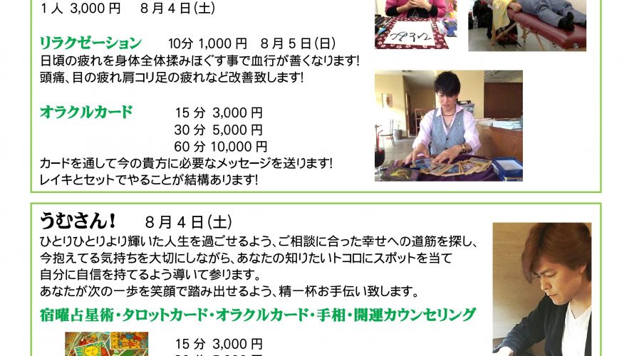 リラクゼーション 10分1,000円 8月5日(日)