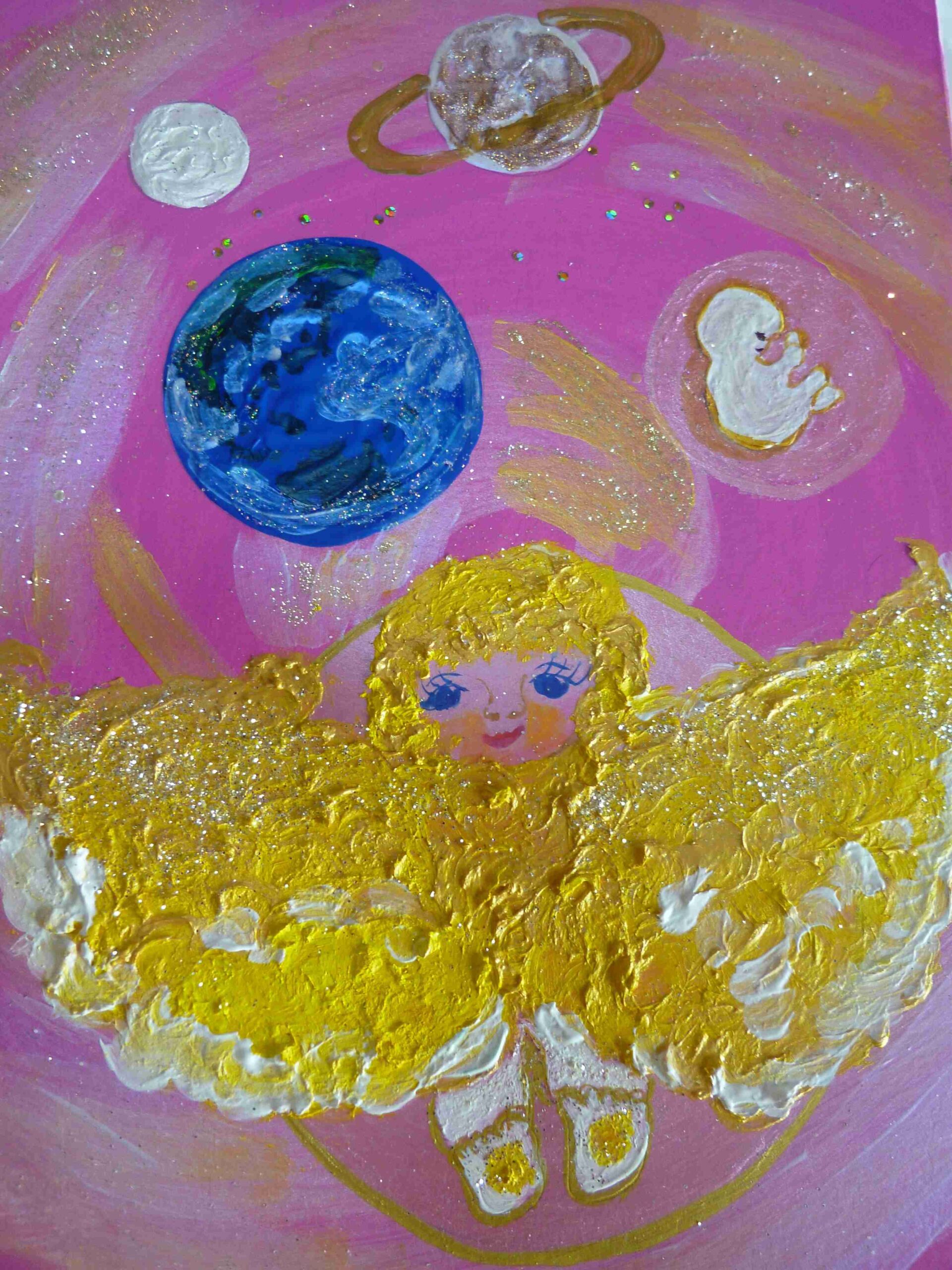 日本に沢山天使が舞い降りて来ます様に願いを込めて描きました。